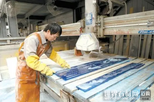 牟建國是河北豐寧人,他介紹,石材城有近2000家商戶,大多來自北京,目前客戶群體也是面向北京的消費者與建材市場。做石材很辛苦,進口原石要在天津?qū)氎嫱瓿汕衅瑨伖獾纫患壖庸ぃ较愫舆M行切邊整形等二級加工,成品還在這里展示。
