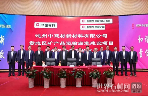 在去年11月,中建材華東材料有限公司與集團所屬中材國際(南京)、中材礦山舉行了池州中建材新材料有限公司貴池區礦產品運輸廊道建設項目總承包合同的簽約儀式。該廊道項目位于安徽省池州市貴池區梅街鎮橫山礦區,長約38公里,其中隧道約13公里,高架約25公里,并配套供電、供水、環保、消防等設施。項目設計運輸能力達6000萬噸/年,其中自產礦產品運輸4000萬噸,社會礦產品運輸2000萬噸。該項目致力于建設封閉式運輸皮帶廊道,改變傳統公路運輸方式,通過信息化手段對砂石運輸實現全程監管,構建綠色物流與綠色供應鏈。