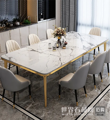 外觀奢華:大理石具有獨特的紋理和光澤,給餐桌帶來高級感和豪華氛圍。它可以成為客廳或餐廳的亮點,并增添整體裝飾的美感。