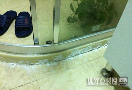 有那么一天,當你走進衛生間發現石材好像失去光澤了,其表面看著白蒙蒙的一片,細看有粉塵感,不少石材連接的縫隙處都有一道道白色條狀物,