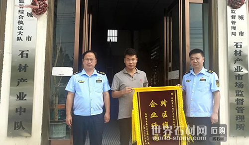 9月15日,麻城市閩南石業(yè)有限公司負(fù)責(zé)人余先生來(lái)到石材產(chǎn)業(yè)園市場(chǎng)監(jiān)管所,將一面“跨區(qū)維權(quán)、企業(yè)紓困”的錦旗送到工作人員手,借此表達(dá)對(duì)該監(jiān)管所助力企業(yè)維權(quán)并挽回經(jīng)濟(jì)損失的感激之情。