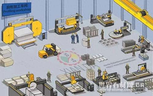 同樣都是最早接觸異形石材的生產基地,水頭漸漸變得大而全,云浮卻趨向于小而精。除了大家所了解的市場需求不同,還有就是所使用石材機械設備的不同,采用不同的異型圓弧板生產工藝流程。