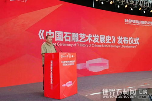 發布儀式上, 主編任世民教授代表編撰組對《中國石雕藝術發展史》作了簡要介紹,該書由中國石材協會石雕石刻專業委員會主編,惠安縣人民政府聯合編撰,中國建材工業出版社出版。副會長郭經偉代表中國石材協會向惠安縣委常委、副縣長蔣舒翔贈書 。