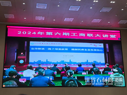 石材網獲悉 ,為深入學習落實習近平總書記在中央政治局會議上關于當前經濟形勢和經濟工作重要講話精神,助力廣大民營經濟人士和工商聯系統干部職工掌握用好政策,11月14日,全國工商聯舉辦了主題為“宣傳解讀一攬子增量政策,提振民營企業發展信心”的2024年第六期工商聯大講堂。中央統戰部副部長、全國工商聯黨組書記沈瑩,全國工商聯副主席邱小平、方光華出席活動,浙江省石材行業協會于浙江省工商聯分會場參加活動。