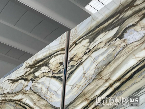 板面特征:最明顯的特點是帶有黑金色繡線,顏色貴而不俗,紋理大氣有張力,板面對拼讓空間更具有延展性、充滿想象力。