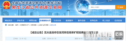 新聞中心> 黑龍江儲量88萬方花崗巖礦成功出讓,溢價率高達1590%!!