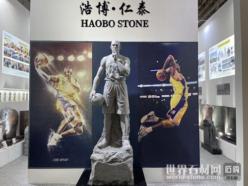 作為第14次參與石材展的“老朋友”,浩博石業今年門廳的主題雕塑是著名球星——科比·布萊恩特,傳遞著熱情、執著、嚴厲、回擊、無懼的“曼巴精神”。惟妙惟肖的雕刻技藝,讓這座石雕顯得非常逼真,引得不少觀眾駐足拍照、打卡。