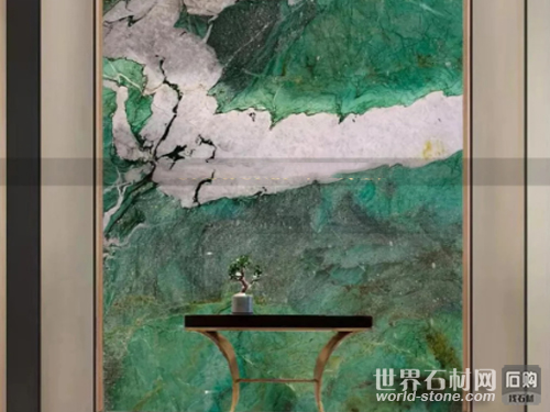 在運用上,百達翡翠色彩明亮,用于裝飾如同和春天擁抱,讓人心情舒暢。在室內常用于背景墻、玄關、臺面、餐桌、墻面等位置,且可搭配北歐風、法式風、現代輕奢風等多種風格,提升家裝貴氣與檔次。