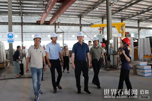 考察組一行先后深入忻城縣博美奧齊石材有限公司、忻城縣盛世投資開發有限公司生產車間和產品展示區,邊走邊聽,邊看邊問,細致了解了石材建材產業的發展優勢、生產銷售及產品研發等狀況。