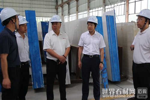 沈國章一行先后走訪了思練鎮古樓礦山、廣西義來建材有限公司、盛世石材公司、大塘鎮博美奧齊石材公司現場,全面了解企業生產責任制落實情況,企業有關負責人就礦山開發建設、礦山生產安全工作、生產經營、機械設備制造項目推進等情況作匯報。