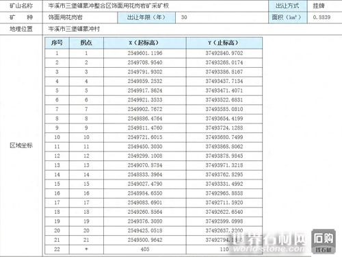 項目名稱:岑溪市三堡鎮蒙沖整合區飾面用花崗巖礦采礦權