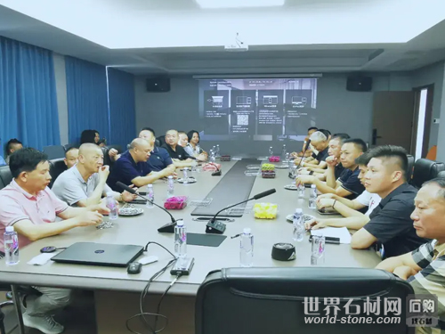 參觀結(jié)束后,隨州市石材商會組織在泰鋒石業(yè)公司召開了座談會。會上,石材商會常務(wù)副會長、康有異形公司楊慶增介紹表示,隨縣不僅石材資源豐富,產(chǎn)品質(zhì)量上乘,且礦權(quán)時間長,產(chǎn)能規(guī)模大,設(shè)施配套全,環(huán)保建設(shè)標準高,產(chǎn)業(yè)具有高質(zhì)量發(fā)展發(fā)展的持久性,可保障新一輪礦權(quán)“礦山開采,三十年不停”。而浙江經(jīng)濟發(fā)展快,建設(shè)項目較大,石材需求廣泛。兩地發(fā)展具有較強互補性,合作空間廣闊,希望兩地以此次考察交流為契機,持續(xù)強化對接,增進交流,深入洽談合作,實現(xiàn)共贏發(fā)展。