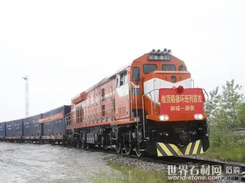 中國石材網獲悉,5月4日18時12分, 裝載32組敞頂箱共計2048噸的碎石的貨運列車,從中國鐵路武漢局集團公司麻城站出發,將開往安徽阜陽的潁泉站,這是麻城地區首次開行至潁泉敞頂箱循環班列。