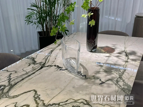 今天要介紹的產自意大利的進口大理石君子蘭,純白底色上,帶有墨綠青翠的紋理 ,宛如蘭枝盛放般交錯縱橫。