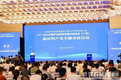 中國石材網獲悉,6月16日,由廣西壯族自治區工業和信息化廳、防城港市人民政府共同承辦的2024中國產業轉移發展對接活動(廣西)新材料產業專題對接活動在南寧隆重舉行。中國國際經濟技術合作促進會、中國有色金屬工業協會、中國石油和化學工業聯合會等有關負責人,以及來自全國各地的企業家代表近500人齊聚一堂,聚焦多個材料領域,進行深入交流洽談。