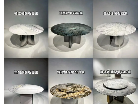 大理石餐桌顏值高,看上去極為奢華,如香雪梅奢石圓桌、蝶戀金花餐桌、藍(lán)翡翠圓桌,畢加索奢石餐桌等等,石如其名,美觀又有意境,往那里一放,都有著讓人無(wú)法拒絕的魅力。