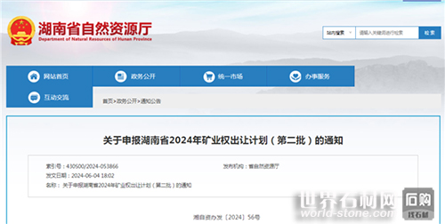 中國石材網獲悉,為切實增強能源資源安全保障,落實新一輪找礦突破戰略行動任務,湖南省結合實際,發布了關于申報湖南省2024年礦業權出讓計劃(第二批)的通知。