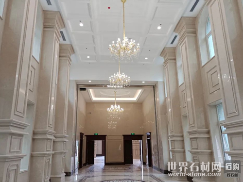 中國石材網(wǎng)了解到,本次塔吉克斯坦項目采用了聯(lián)合設(shè)計的模式實施,是塔吉克斯坦建筑風(fēng)格和中國建筑技術(shù)有機(jī)結(jié)合的典范。項目內(nèi)裝到外裝,產(chǎn)品類型極為豐富,涉及雕刻、線條、水刀拼花、羅馬柱、寶瓶柱等,有超大規(guī)格、厚度多樣,工序復(fù)雜,對石材生產(chǎn)工藝要求非常高,環(huán)球石材針對每個產(chǎn)品都制定了標(biāo)準(zhǔn)的工藝流程和質(zhì)量管控流程,并在加工過程中嚴(yán)格執(zhí)行。同時,對項目進(jìn)度管控十分嚴(yán)格,定期出提示函,確保了項目質(zhì)量和工期。