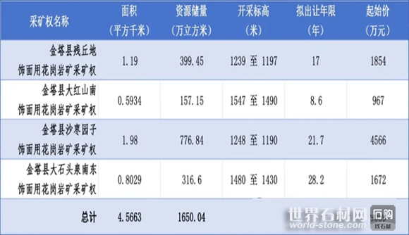 新聞中心> 甘肅金塔縣一日出讓4宗飾面花崗巖礦,起拍價合計9千萬元!