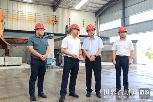 石材網獲悉,8月8日,建寧縣委書記溫欣傳一行蒞臨富強智慧環保建材加工產業園考察調研,受到福建省富強石材有限公司董事長彭宜斌熱情接待并作陪同介紹。