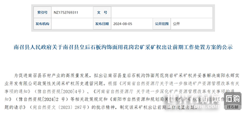 河南南召將再出讓一宗飾面花崗巖礦,年產規模12萬立方米!