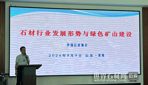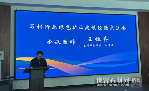萊州市財金公司副總經理郝永凱圍繞“打造智慧服務平臺,助推菜州石材產業(yè)高質量發(fā)展”展開了主題分享交流;福建省富強石材有限公司董事長彭宜斌結合自身企業(yè)分享了綠色礦山建設經驗;榮成中磊科技發(fā)展有限公司海外市場部部長鄒麗麗以礦山機械化開采流程為切入點進行了綠色礦山建設經驗分享;福建晉工機械有限公司市場總監(jiān)陳文啟作了“新質生產力助推石材行業(yè)綠色礦山和智慧礦山建設”的主題分享;中國石材協(xié)會秘書長孫衛(wèi)星作了“石材行業(yè)發(fā)展形勢與綠色礦山建設”的報告分享。