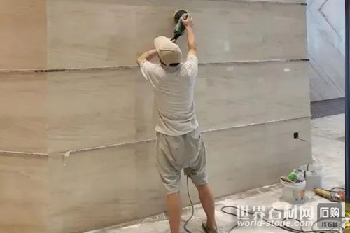 對因安裝不平,或安裝時斷列的石材位置,使安裝工打磨過的地方進行重新還原打磨至平整光亮。