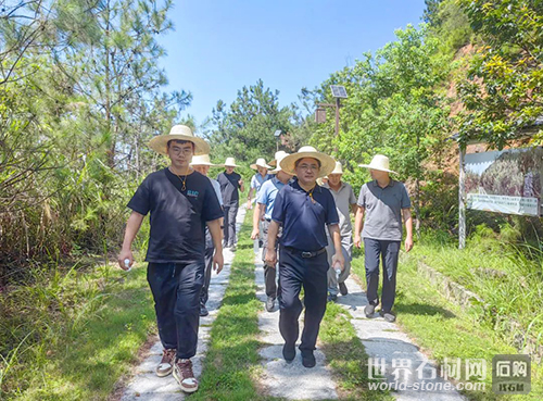 邵九思一行深入富強石材礦山的植被恢復區(二十四孝園)、富強綠色生態路(十二生肖園)、礦山游泳池、礦山小木屋、礦山觀景平臺等地,通過實地走訪觀察,了解了礦山的生態修復、資源綜合利用等情況,該礦山采用了先進的開采技術與設備,實現了資源高效利用,最大限度減少了對環境的影響,并對富強礦山采取的一些列綠色環保舉措與其持續發展理念深表贊賞。