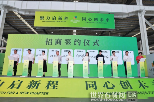 在全場嘉賓見證下,王連贊市長等領(lǐng)導(dǎo)與行業(yè)代表共同啟動全球招商儀式,54 家企業(yè)現(xiàn)場完成簽約,覆蓋石材生產(chǎn)、智能加工、綠色輔料等全產(chǎn)業(yè)鏈。其中,水頭鎮(zhèn)政府與皇家資產(chǎn)投資有限公司簽約的福建五克拉石業(yè)超薄石材示范產(chǎn)線項目尤為亮眼 —— 總投資 2.5 億元的智能化生產(chǎn)基地,將引入國際先進技術(shù),推動石材應(yīng)用向輕薄化、低碳化創(chuàng)新升級,為行業(yè)綠色轉(zhuǎn)型提供 “水頭樣本”。
