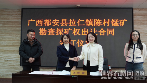 日前,廣西自然資源交易中心組織竟得了企業—廣西森工礦業投資有限公司代表在南寧簽訂都安瑤族自治縣拉仁鎮陳村錳礦勘查探礦權出讓成交合同,公司以406萬元竟得該探礦權,這也是2024年度最后一批自治區本級出讓的探礦權之一。
