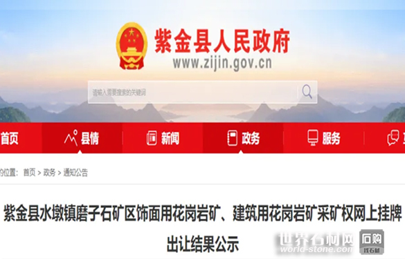 石材網(wǎng)獲悉, 近日,位于廣東河源市紫金縣水墩鎮(zhèn)的磨子石礦區(qū)飾面用花崗巖礦及建筑用花崗巖礦的采礦權被日仙石材(紫金)有限公司成功競得,該公司為一家香港私企,競拍價格為7663.66萬元。