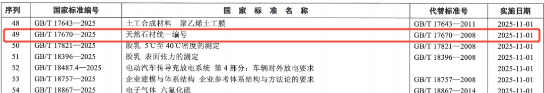 第49項 GB/T 17670―2025《天然石材統一編號》