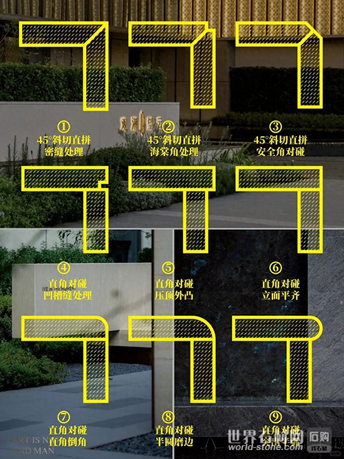 石材常用拼接方式有九種,不同拼接的用途各有不同,我們這里進行介紹: