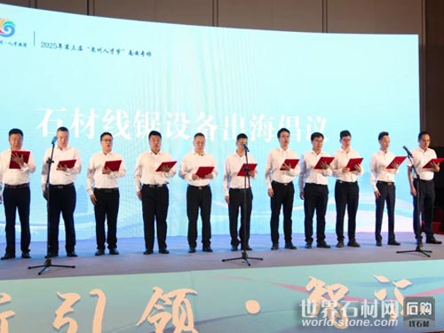 會上,中縫利華、天晶裝備、青島高測、湖南宇晶、科達制造、大鯊魚機械、品河精密、八匹馬機械、以尚智能、科旭裝備、廣東奔朗等11家參與團體標準編制的企業(yè)共同發(fā)起了線鋸設備出海倡議。這一倡議旨在凝聚行業(yè)發(fā)展共識,匯聚產業(yè)協(xié)同力量,推動南安石材裝備“揚帆出海”,讓南安智造走向全球市場,提升南安石材產業(yè)的國際競爭力。