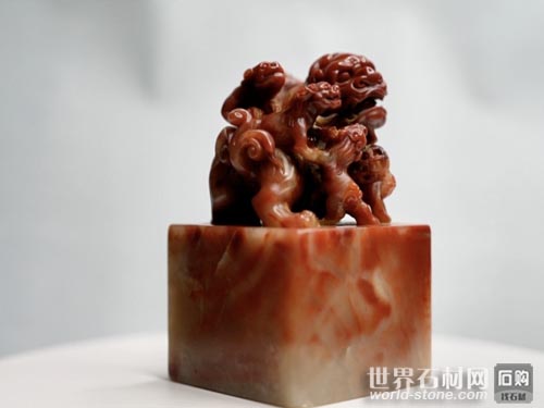 這里給大家介紹的是一件集色、質、藝于一體的壽山石珍品——蠟燭紅五獅大方印。其色澤如紅燭初燃,溫潤細膩;其印紐雕工精湛,五獅環繞,栩栩如生,堪稱壽山石雕刻中的上乘之作,我們從以下幾個方面來鑒賞: