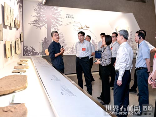 在福建省英良石材自然歷史博物館內,劉良董事長以時間軸為主線,從46億年前墜落地球的天外隕石講起,生動地講述了石頭跨越時空的傳奇故事。調研組成員沉浸其中,紛紛感嘆于石材所承載的深厚文化底蘊與獨特魅力。