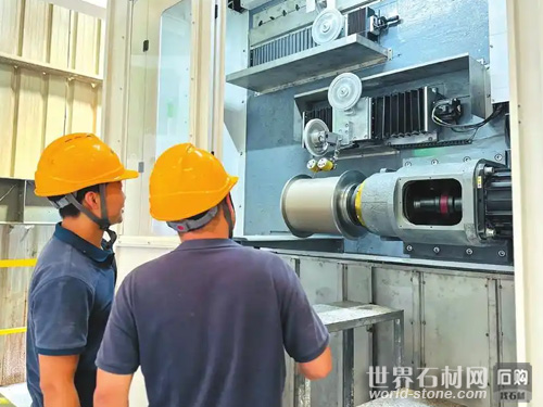 看著金剛線平穩地在荒料上劃出一道道整齊縫隙,新華石材總經理謝英森難掩興奮:“這臺設備比去年裝的線鋸提速33%。如果能穩定運行,我馬上再加裝一臺!”
