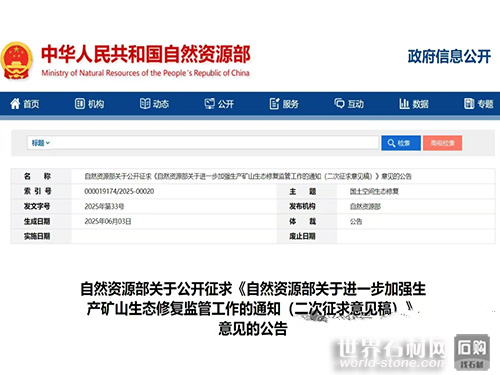 “開一處礦山,毀一片山林,損一方生態(tài)”,這曾是礦業(yè)開發(fā)的常態(tài)寫照。如今,隨著2025年6月3日自然資源部發(fā)布《關(guān)于進(jìn)一步加強(qiáng)生產(chǎn)礦山生態(tài)修復(fù)監(jiān)管工作的通知(二次征求意見稿)》,這種傳統(tǒng)模式即將成為歷史。石材網(wǎng)獲悉,自2025年7月1日起,我國礦山生態(tài)修復(fù)監(jiān)管將迎來重大變革,標(biāo)志著礦山行業(yè)進(jìn)入了一個(gè)全新的階段。