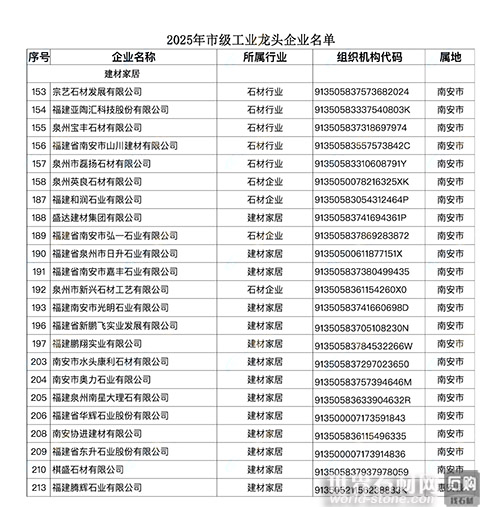 23家石材企業榮登2025泉州市級工業龍頭企業榜單