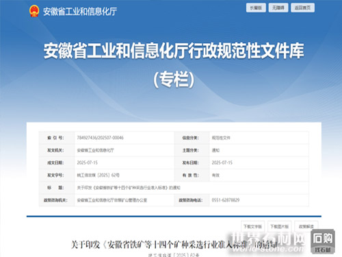 石材網(wǎng)獲悉,近日,安徽省工業(yè)和信息化廳聯(lián)合省發(fā)展改革委、省自然資源廳等九部門印發(fā)了《安徽省鐵礦等十四個礦種采選行業(yè)準(zhǔn)入標(biāo)準(zhǔn)》。針對建筑石料、白云巖等與砂石產(chǎn)業(yè)緊密相關(guān)的礦種,明確了開發(fā)原則、建設(shè)規(guī)模、工藝要求等一系列準(zhǔn)入規(guī)范,旨在推動砂石行業(yè)的轉(zhuǎn)型升級與綠色高質(zhì)量發(fā)展。